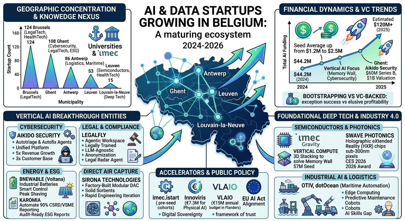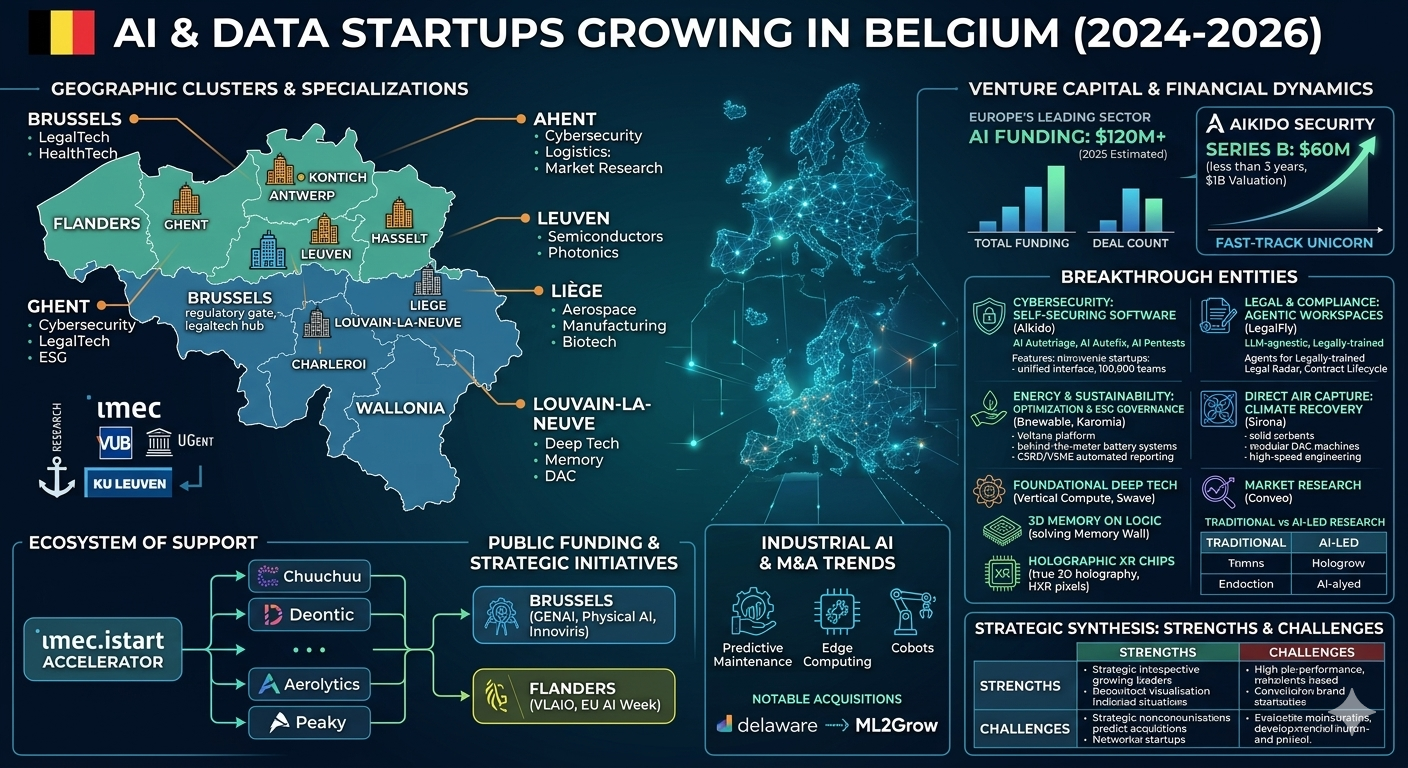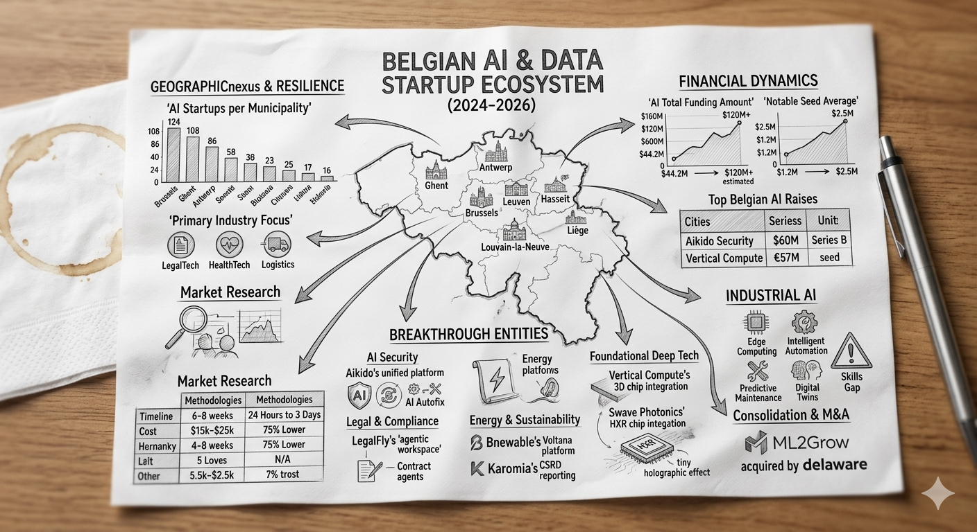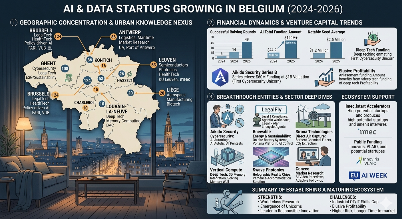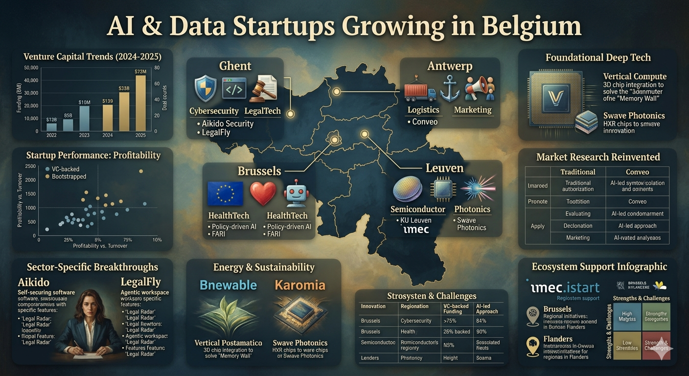 The data suggests that Belgium has successfully carved out a niche as a high-density, specialized AI ecosystem that prioritizes depth, security, and industrial application over speculative horizontal growth. The rapid success of firms like Aikido Security and LegalFly demonstrates that Belgian startups are particularly effective when they target specific enterprise "pain points" where trust and data privacy are paramount.