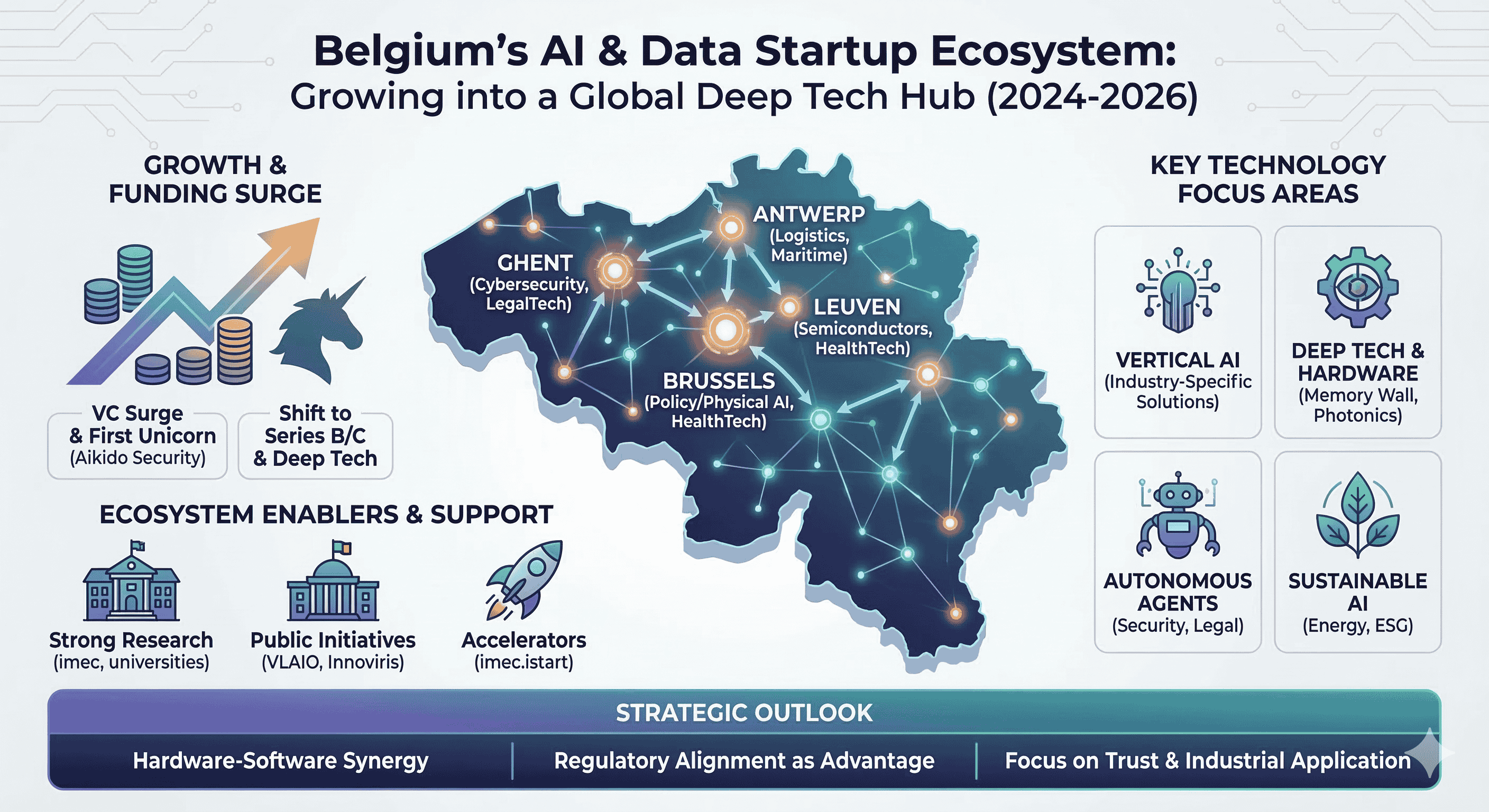Regional Hub Specialization: The distinct identities of Ghent (Cyber/Legal), Antwerp (Logistics/Marketing), and Leuven (Deep Tech/Semiconductors) provide a robust multi-nodal network that attracts diverse international investment while fostering deep local expertise.