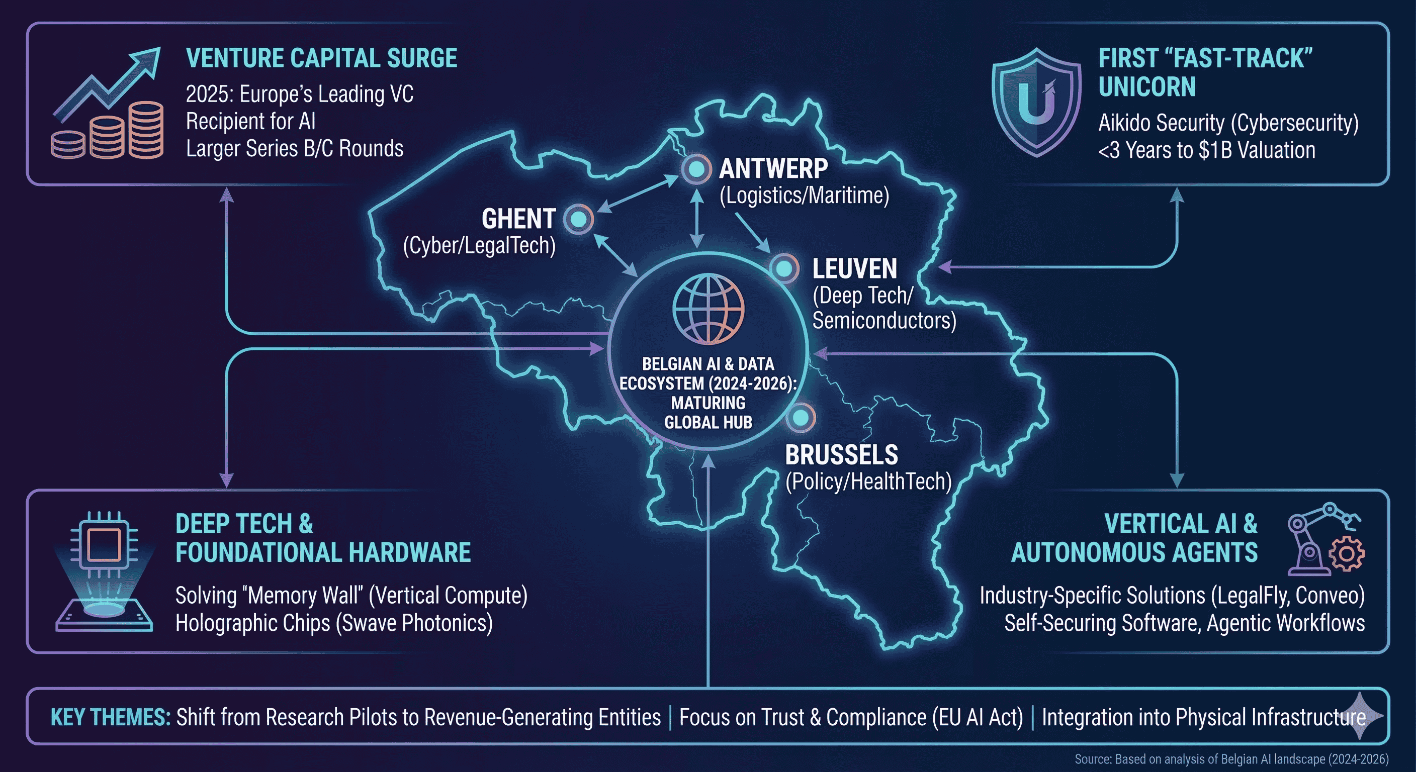 The year 2025 marked a definitive turning point for AI investment in Europe, with the sector emerging as the region's leading recipient of venture capital for the first time. In Belgium, this trend mirrored the broader European shift toward deep tech and hardware-driven innovation. The transition from speculative SaaS platforms to companies solving the "Memory Wall" or the "Cybersecurity False Positive" crisis reflects a maturing investor base that prioritizes technical validation over superficial metrics.