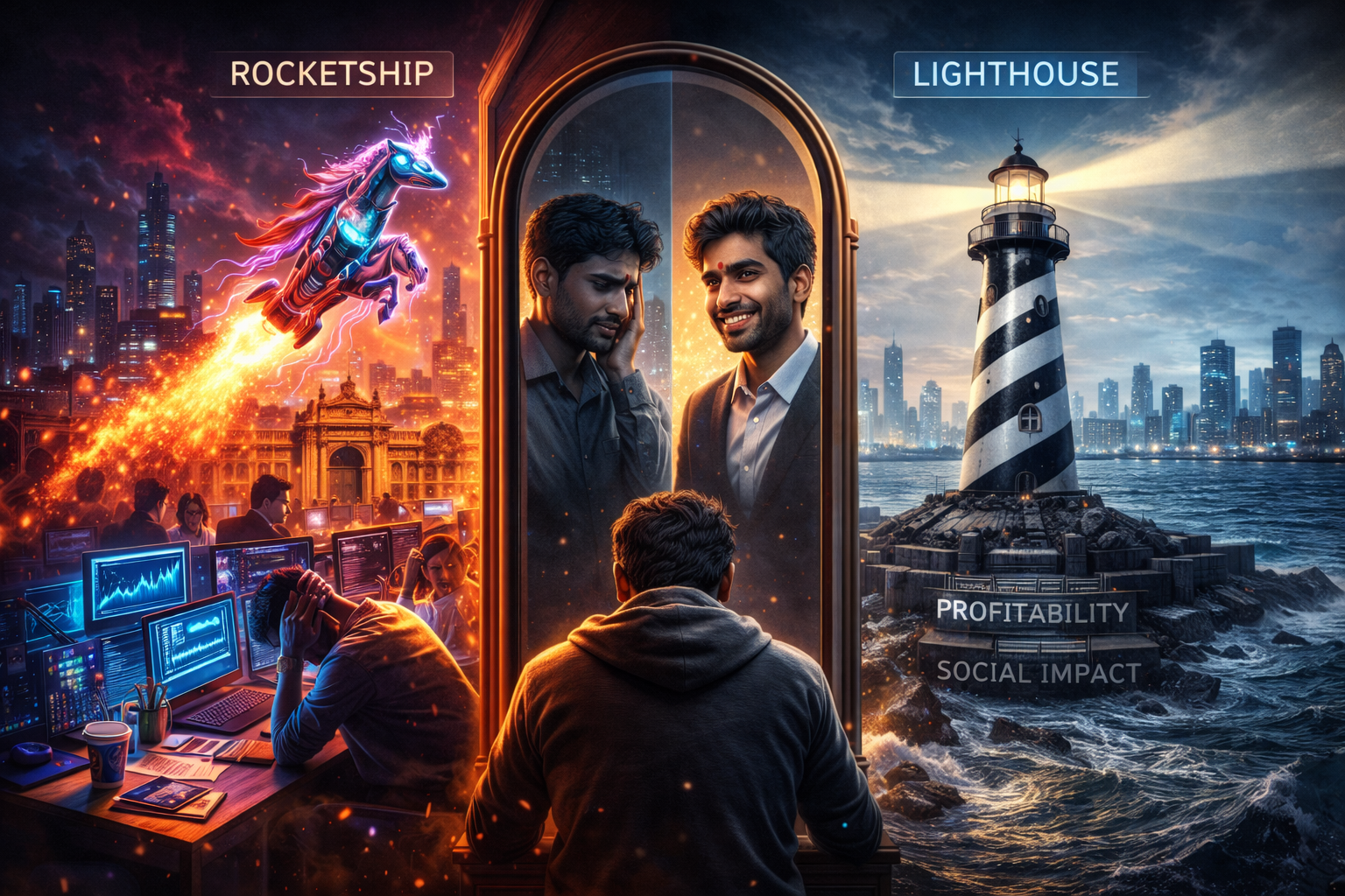 The distinction between the traditional unicorn model and the emerging zebra movement can be synthesized as a choice between building a "rocketship" or a "lighthouse". Rocketships are designed for rapid, high-altitude flight but risk burning out if they attract too much attention without a solid foundation. Lighthouses are resilient businesses that endure over the long term, guiding their communities through market storms.