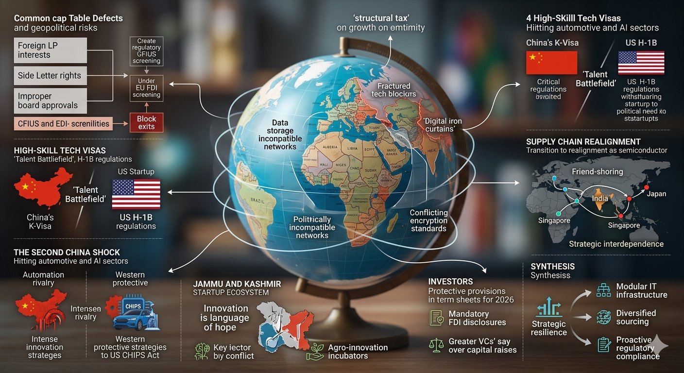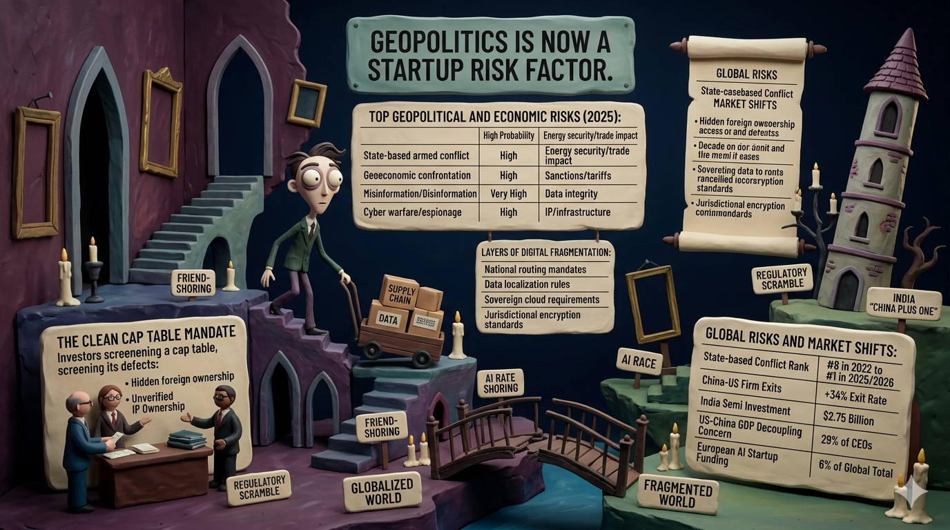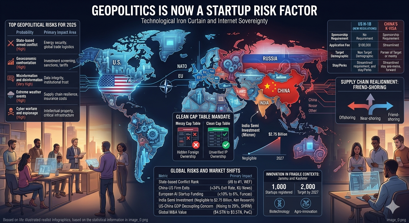 The convergence of global conflict, technological fragmentation, and state-mediated competition has made geopolitics the defining risk factor for the next generation of startups. The era of the "neutral" tech company is over; every startup is now a political entity by virtue of its supply chain, its data, and its investors. The successful startup of 2027 will not be the one that ignores geopolitics, but the one that builds resilience into its foundation through modular infrastructure, diversified sourcing, and a cap table that can survive the most rigorous national security scrutiny.