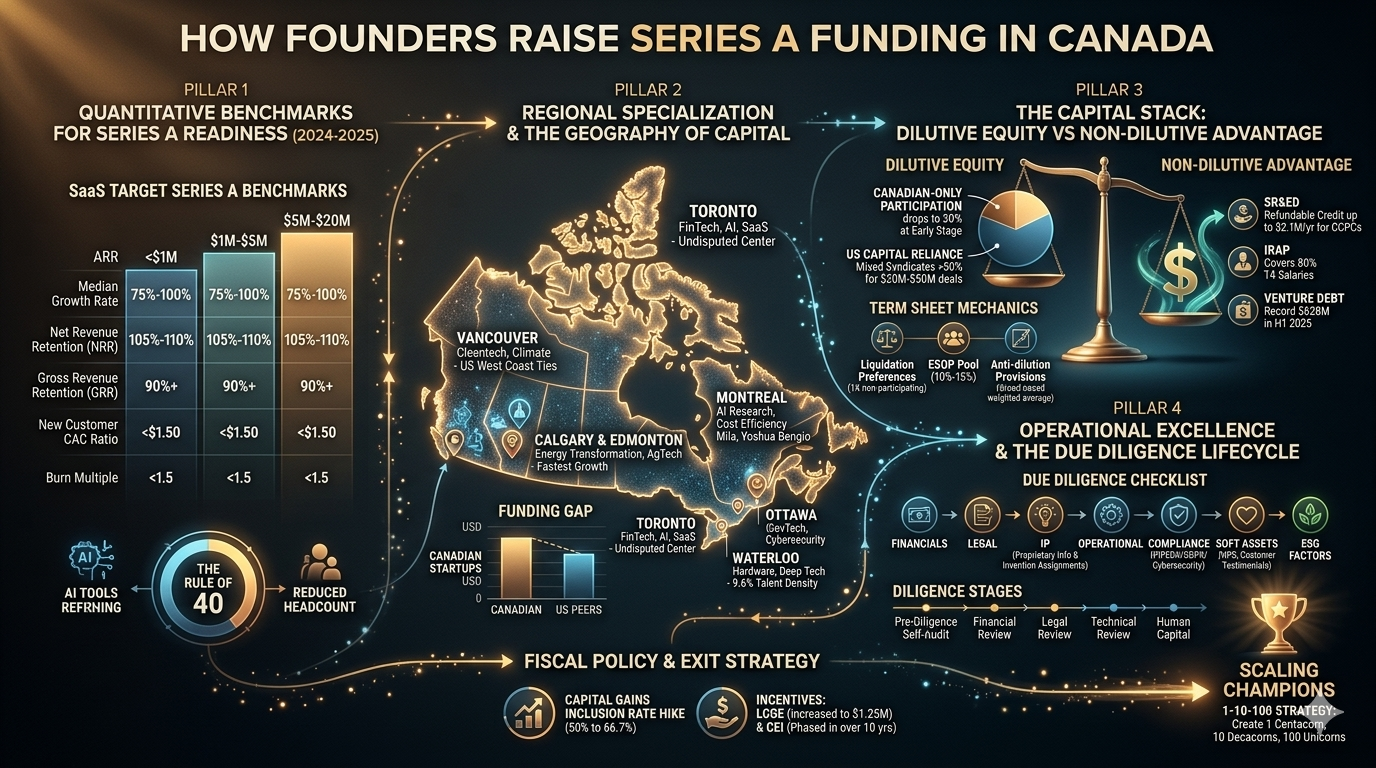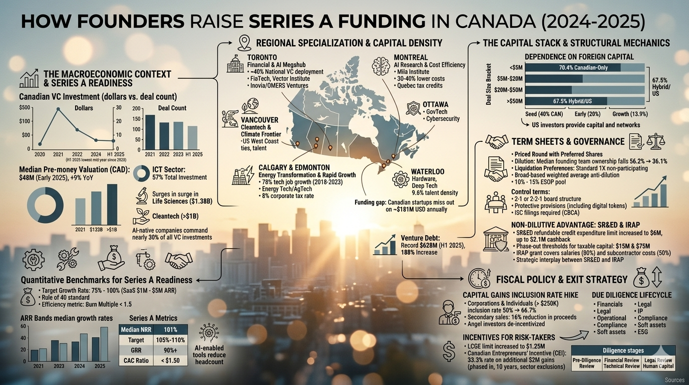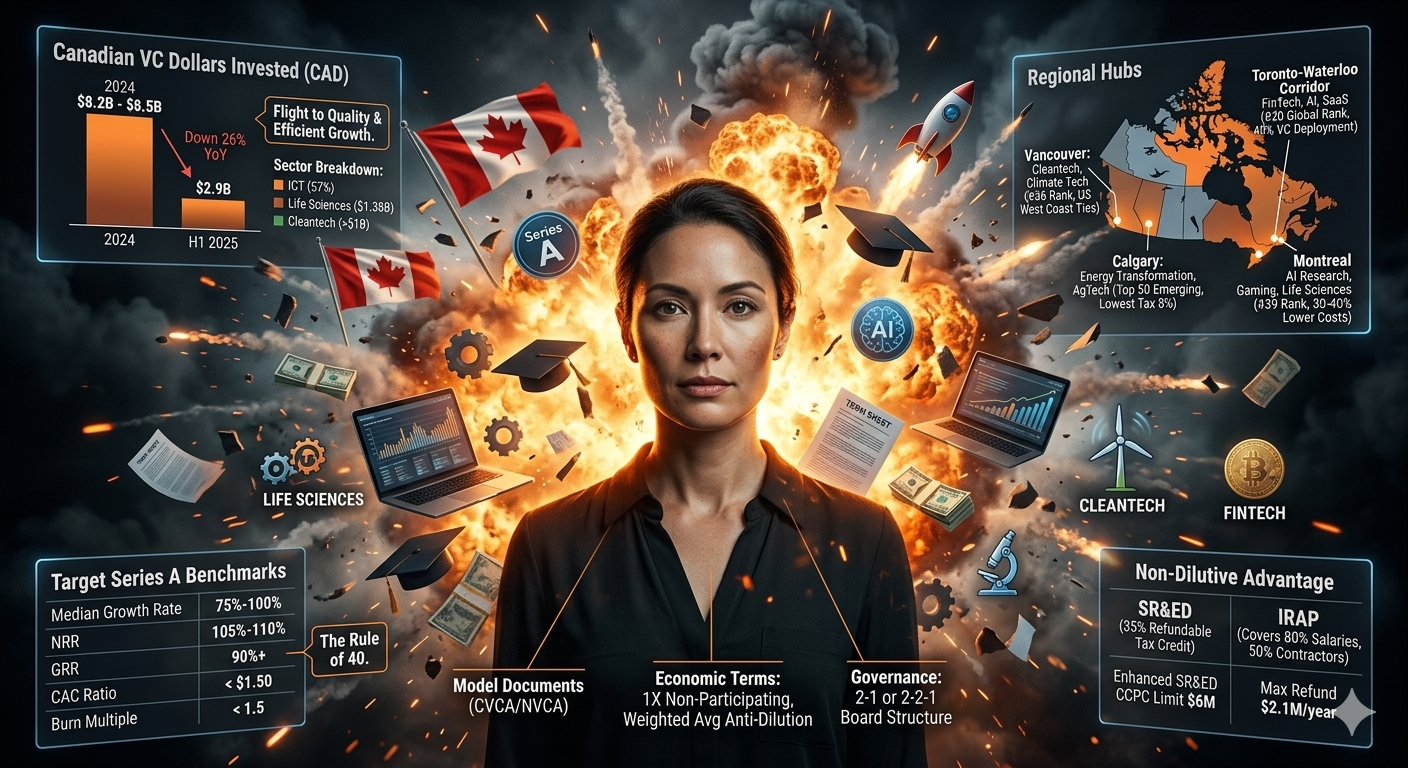 For the Series A founder, the 2024-2025 market is a "study in contrasts". It is an environment where capital is available for those who can prove efficiency, where non-dilutive incentives like SR&ED and IRAP provide a unique safety net, and where regional hubs are developing deep sectoral expertise. However, it is also a market where the "bar" for entry is higher than ever, and where the strategic decision to remain in Canada or flip to the US must be weighed against a complex backdrop of shifting tax policies and foreign capital dominance. Success in this landscape requires more than just a great product; it requires the strategic orchestration of capital, legal rigor, and operational excellence.