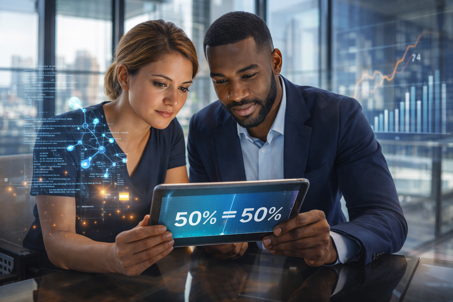 In this model, a technical co-founder who is working full-time from day one, bringing a decade of specialized AI experience, but who is not investing personal cash, might score 80 out of 100 on the matrix. If the business founder is also full-time and invests $50,000, they might score 90. The resulting equity split would then be proportional to these scores—roughly 47% to 53%.