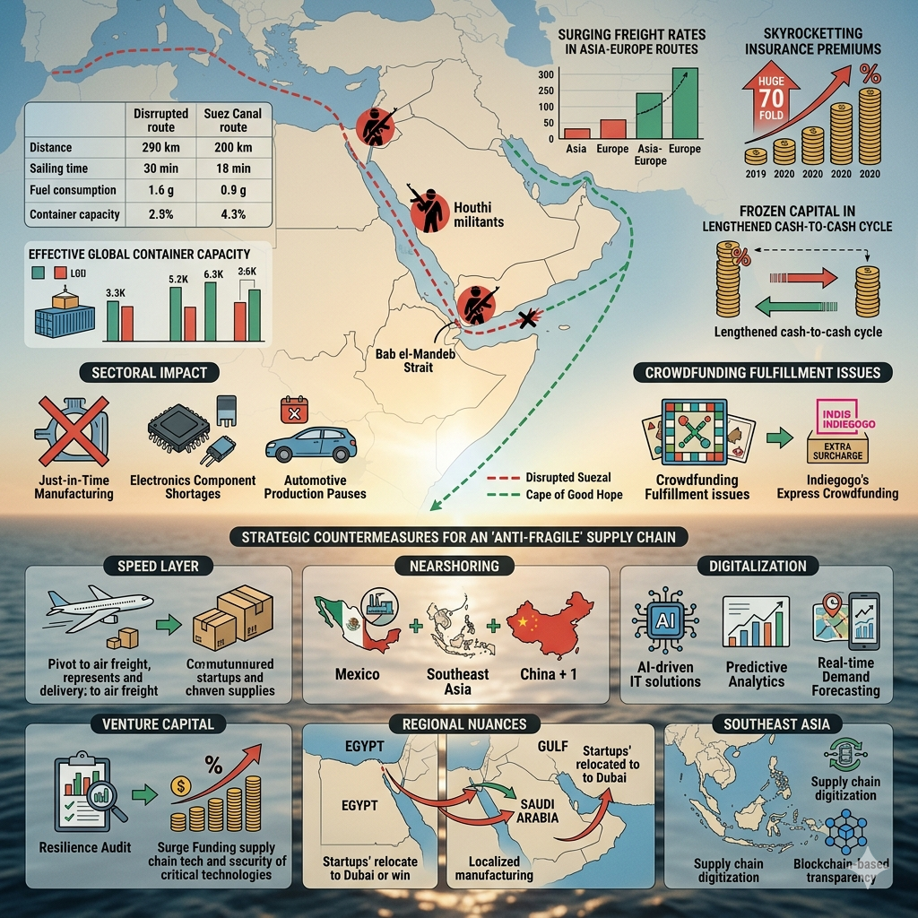 The Red Sea crisis has profoundly influenced venture capital (VC) sentiment and due diligence requirements in 2025. Investors are no longer just looking for growth; they are prioritizing "defensible" supply chains and resilient operating models.