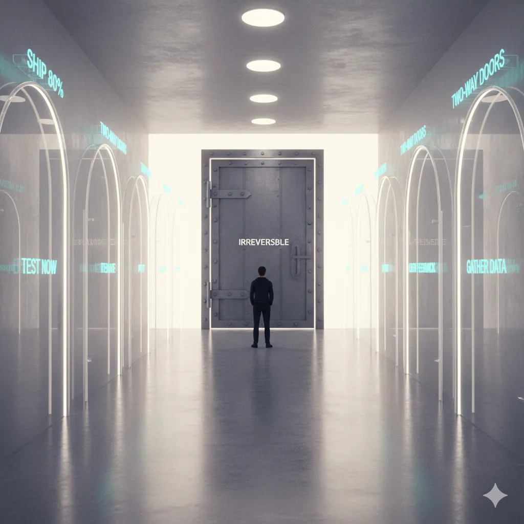 A critical component of this heuristic is the distinction between reversible and irreversible decisions. Bezos categorizes decisions into two types: Type 1 decisions are "one-way doors"—they are high-impact and irreversible, requiring careful deliberation. Type 2 decisions are "two-way doors"—they are easily reversible and should be made quickly with a bias toward action. Most building tasks, such as initial product features or marketing headlines, are Type 2 decisions. Recognizing this reduces the weight of any single choice and encourages a culture of experimentation.