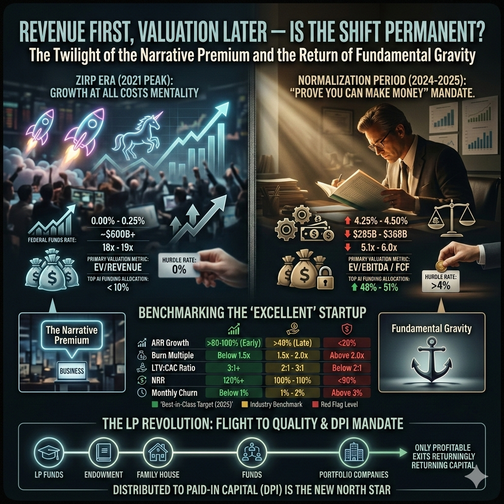 The evidence gathered from the 2024-2025 market cycle suggests that the shift toward "Revenue First, Valuation Later" is a permanent structural change for several key reasons. First, the cost of capital has normalized; even with potential rate cuts, the era of "near-zero" interest rates is widely considered an historical anomaly. Second, the "DPI mandate" from LPs has fundamentally changed how venture and private equity firms are evaluated and compensated, ensuring that realized returns will remain a priority. Finally, the maturation of technology—from the speculative "eyeballs" of 2000 to the "agentic automation" of 2025—means that the infrastructure is now in place for companies to build sustainable, profitable businesses from day one.