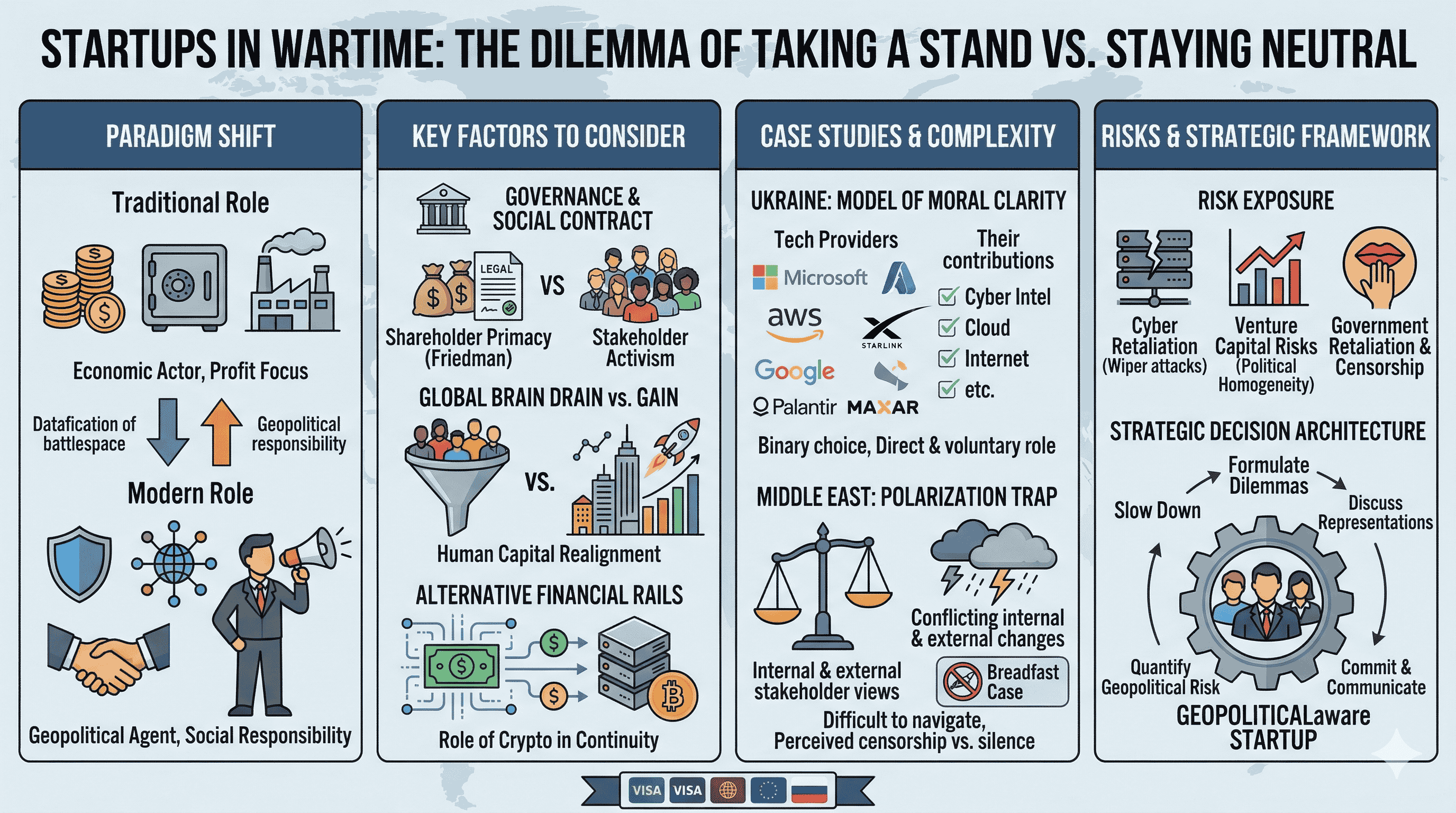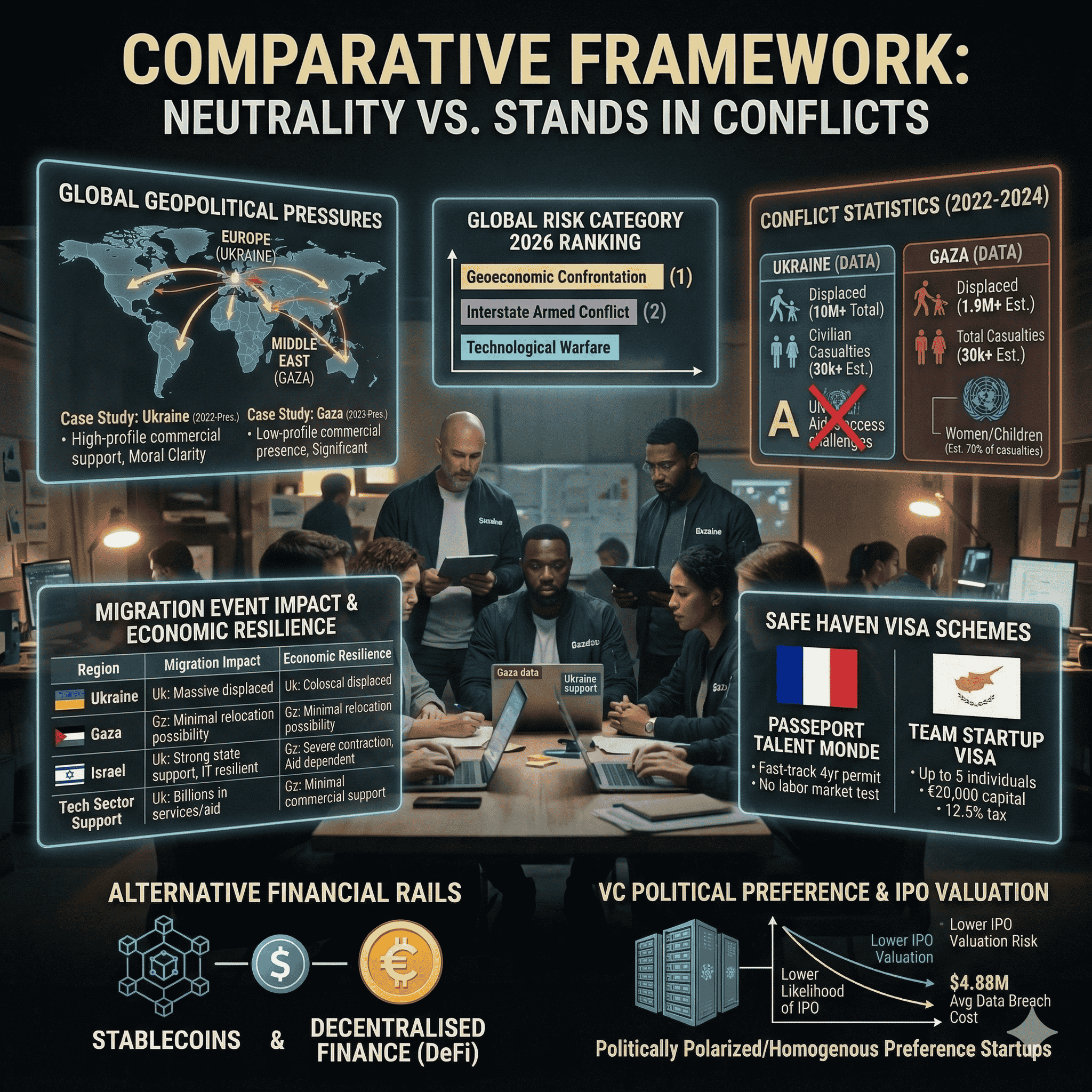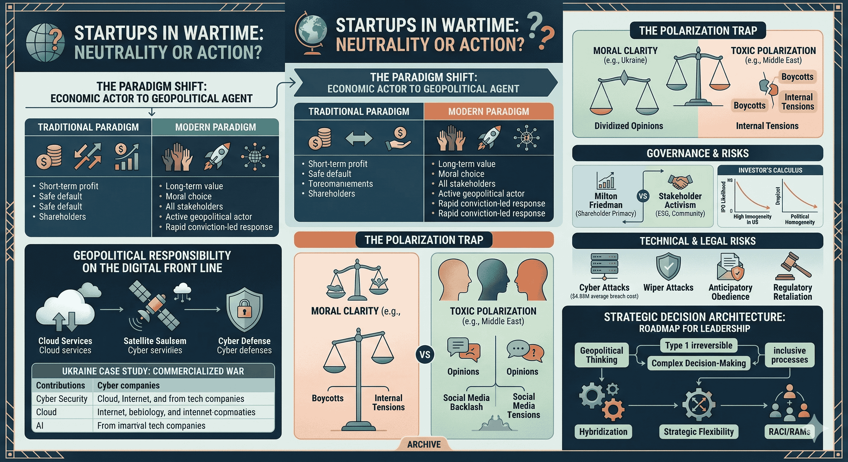 The fundamental question of whether a startup should stay neutral or take a stand in wartime does not yield a universal answer. Instead, the evidence suggests that the very concept of "neutrality" has been transformed. It is no longer a passive state but an active, strategic, and moral choice that carries its own set of risks and rewards. For startups, the "Ukraine model" has shown that moral clarity can provide a powerful lever for growth and resilience, while the polarization surrounding the Middle East conflict has demonstrated the dangers of perceived hypocrisy and the high cost of silence.