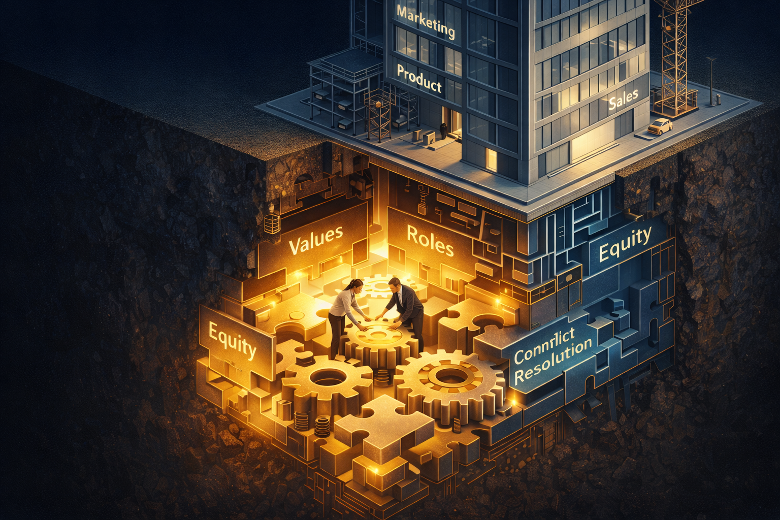 Conflict frequently arises from role ambiguity. The Lin framework suggests asking: "What would you want your role to be before product-market fit versus after product-market fit?". This anticipates the necessity for founders to "give away their legos"—relinquishing control of functions they once owned as the organization scales.