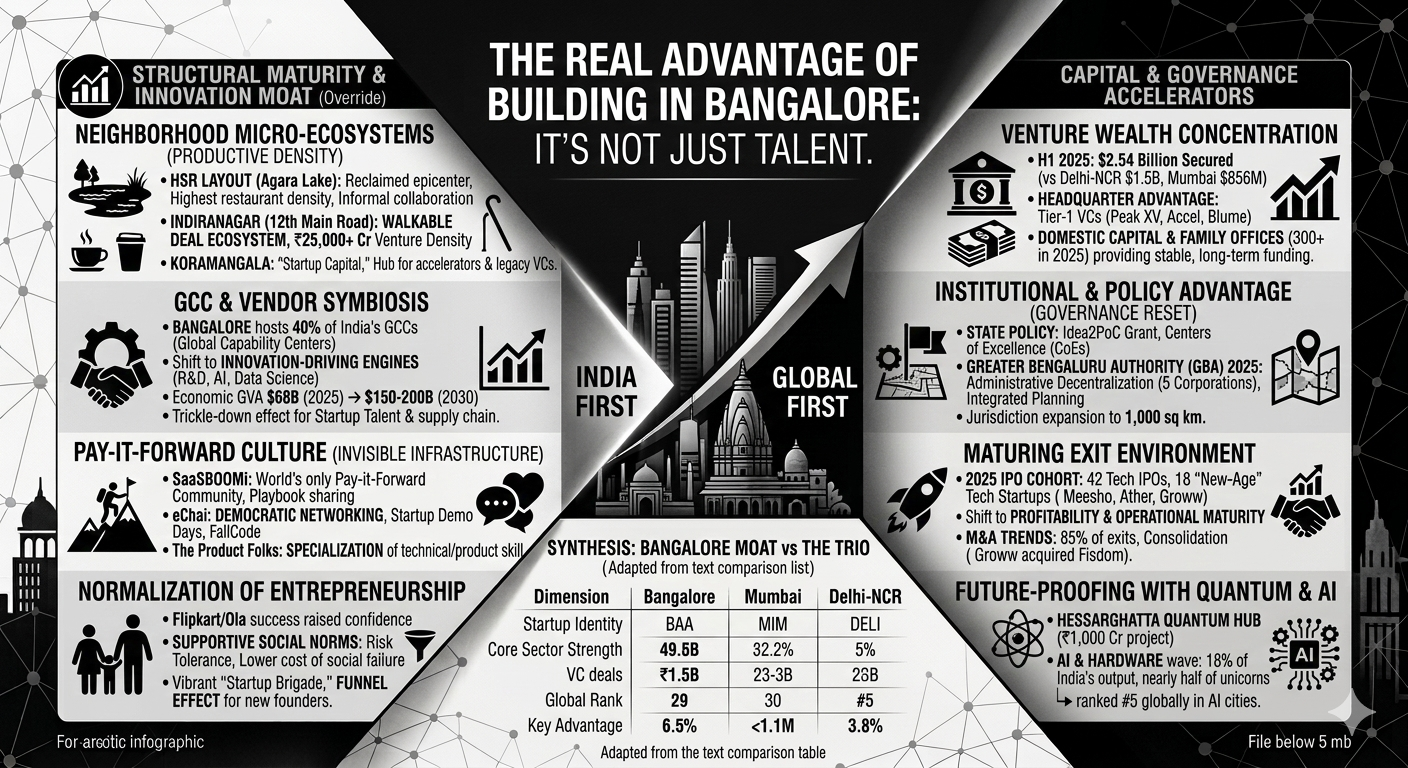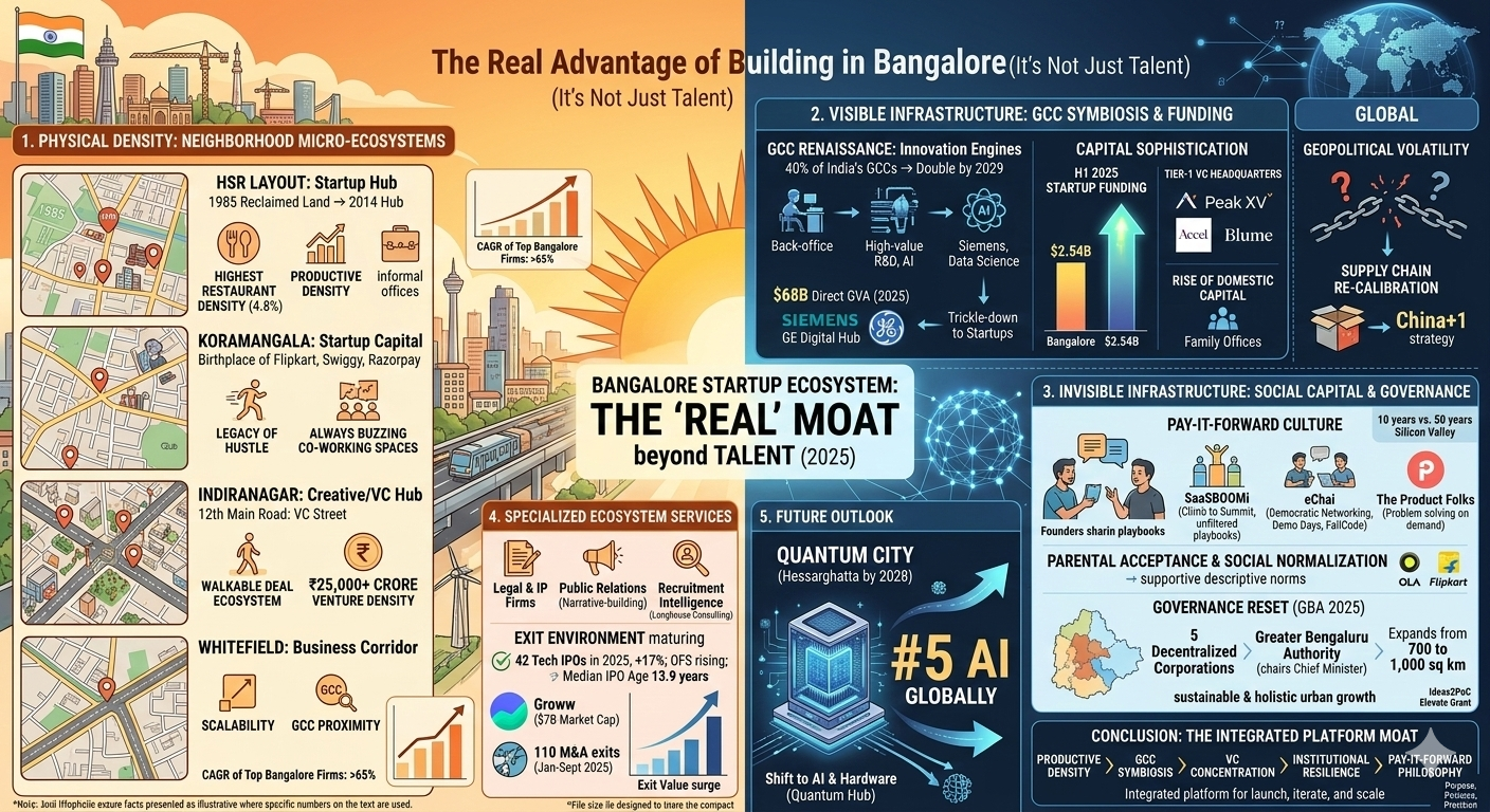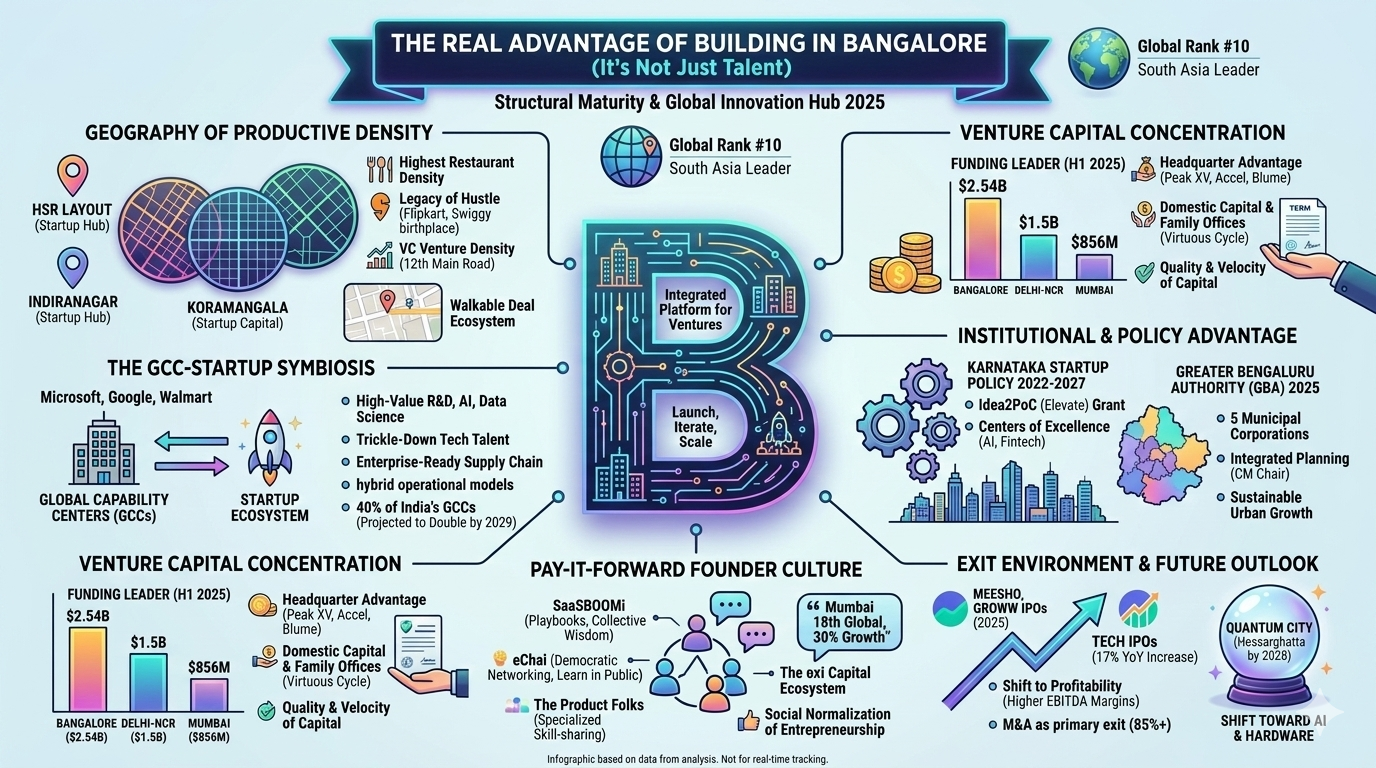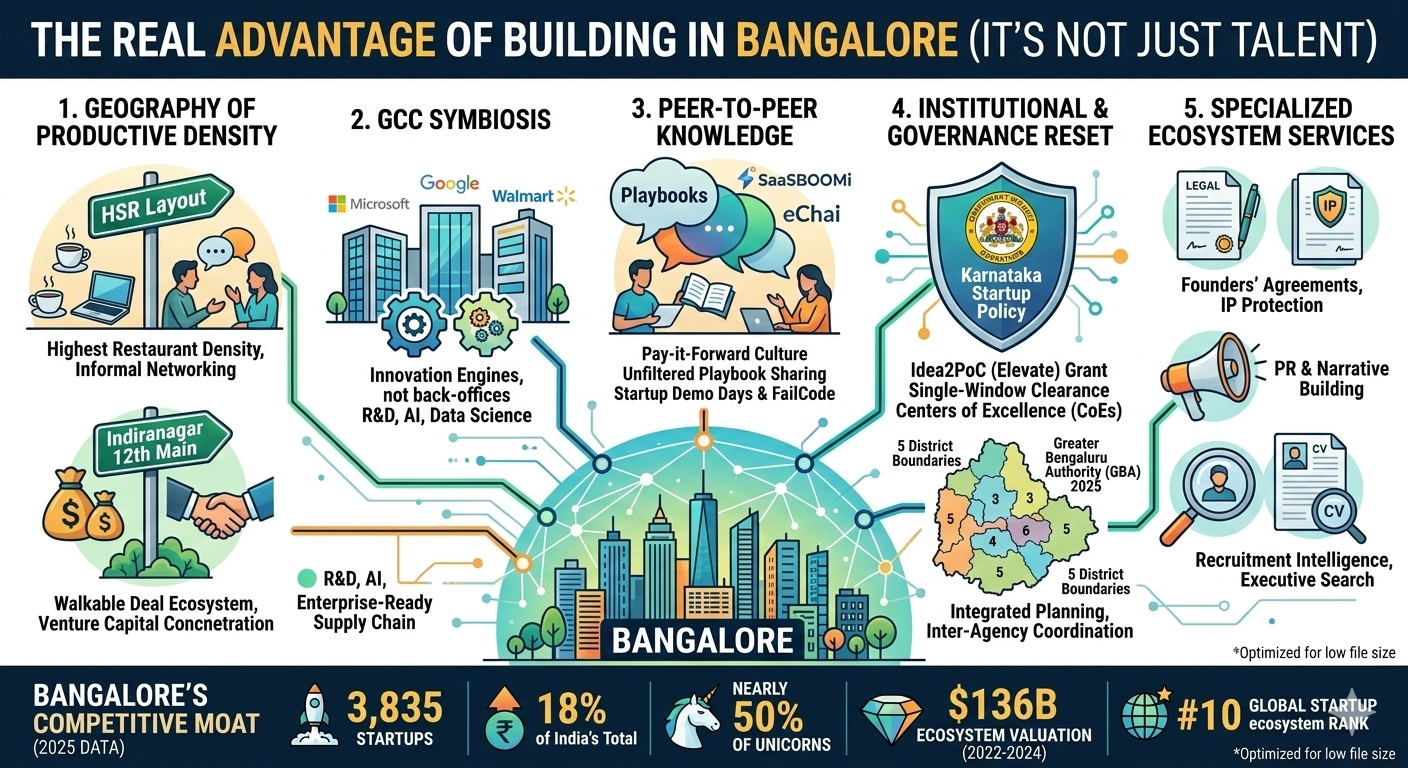 The "real" advantage of Bangalore often cited by founders is its "pay-it-forward" culture—a philosophy of peer-to-peer support that mimics the early days of Silicon Valley.