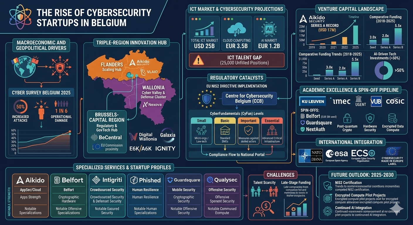 In conclusion, the rise of cybersecurity startups in Belgium is a direct response to a "perfect storm" of geopolitical necessity, regulatory pressure, and academic excellence. By leveraging its unique regional strengths and its position at the heart of European decision-making, Belgium has established a cybersecurity ecosystem that is not only resilient but increasingly competitive on the global stage. The success of firms like Aikido Security and the emergence of deep-tech spin-offs like Belfort serve as a blueprint for how a small, highly developed nation can carve out a leadership position in a critical global industry. The challenge for the coming years will be to navigate the talent shortage and the funding "ceiling" to ensure that these startups can grow into the world-class companies they aspire to be.