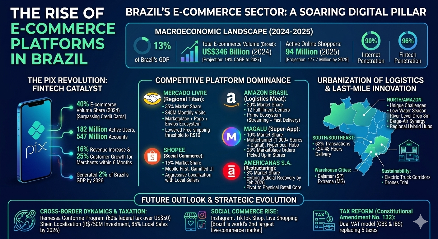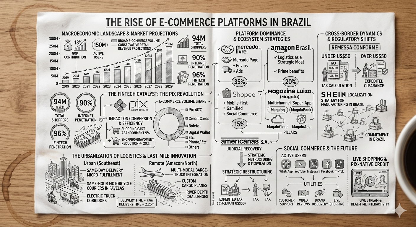Fintech-Retail Convergence: The platforms that act like banks will win. The ability to offer credit and instant payments (Pix) is the primary driver of loyalty.