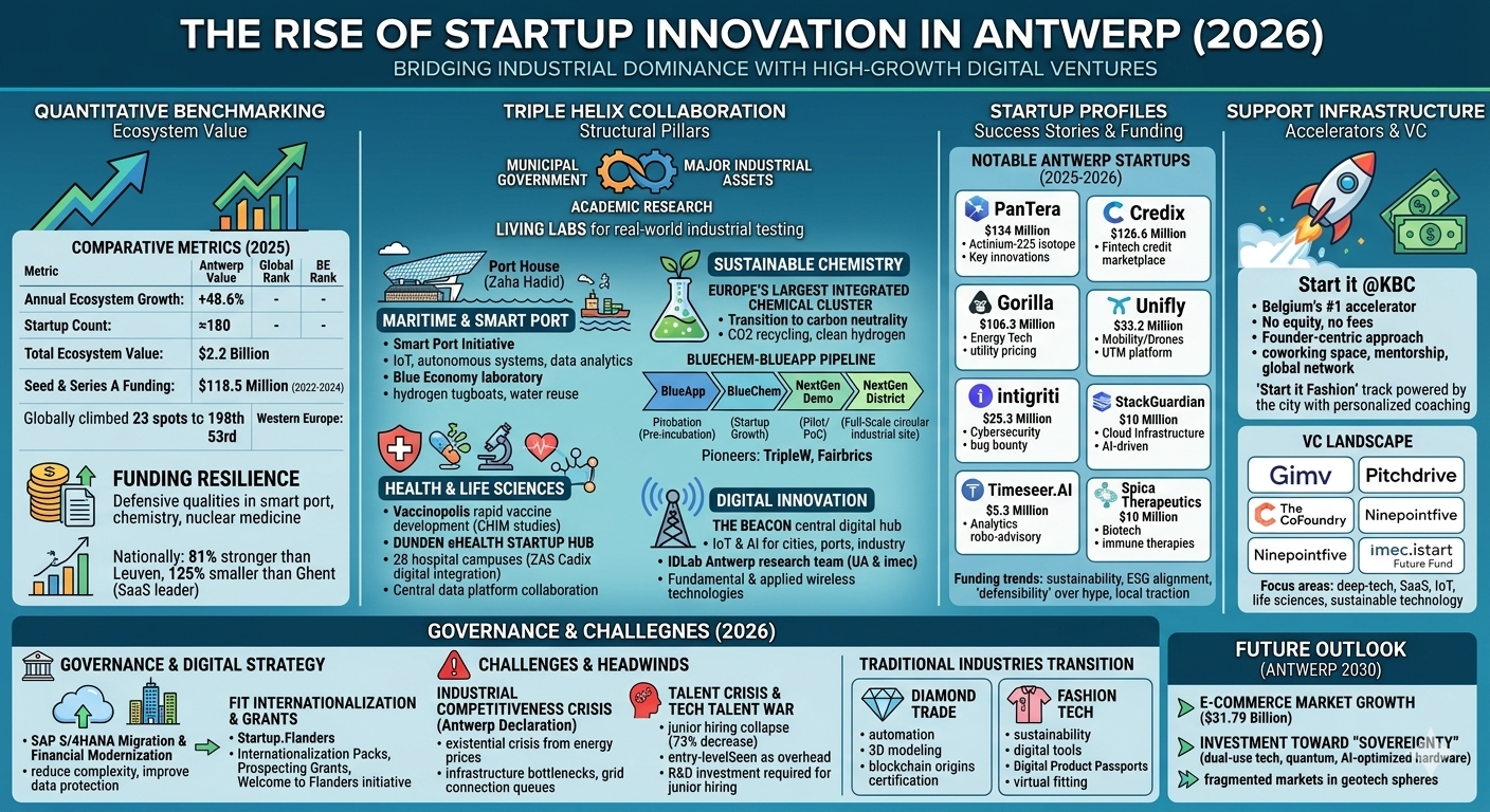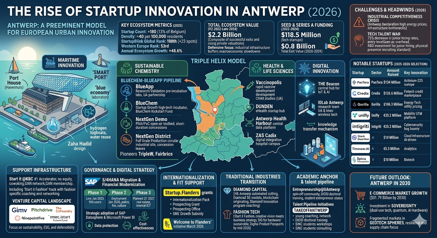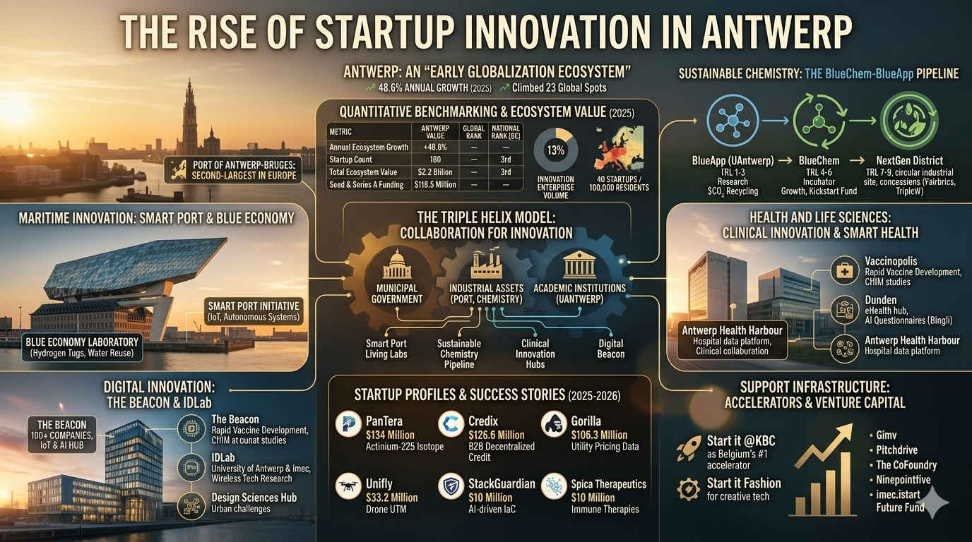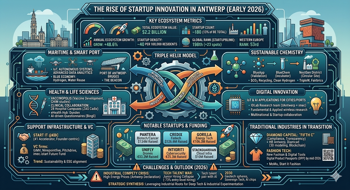 The rise of startup innovation in Antwerp represents a sophisticated evolutionary path where the city has successfully leveraged its inherent industrial advantages to foster a high-growth tech economy. By integrating the Port of Antwerp-Bruges, the European chemical cluster, and a world-class academic infrastructure into a unified "Triple Helix," Antwerp has created a unique environment for deep-tech and industrial experimentation.