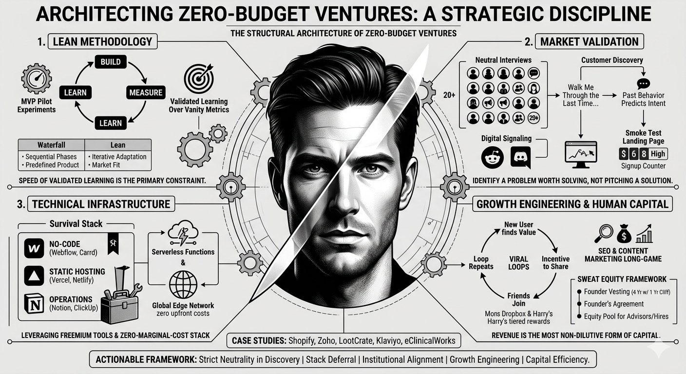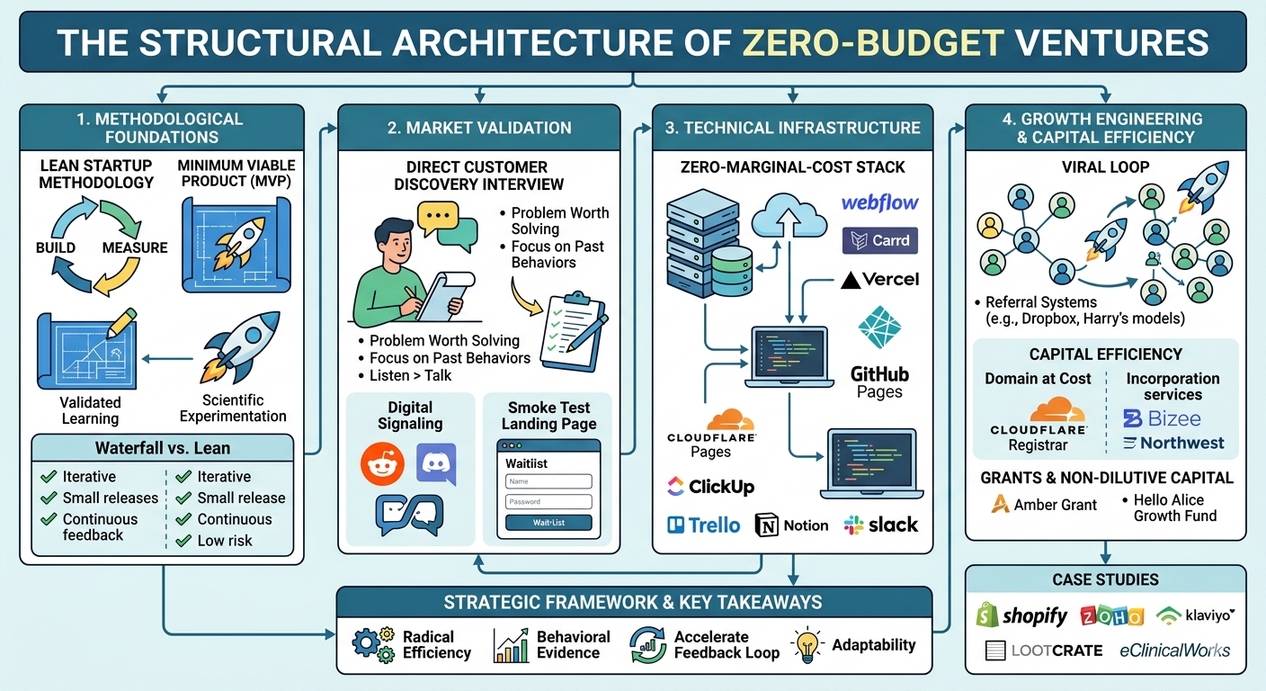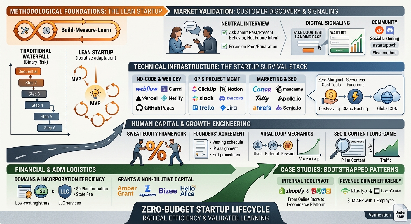 Building a startup with zero budget in 2026 is a discipline of radical efficiency and behavioral evidence. The transition from a "garage underdog" to a scalable enterprise is structured around the continuous reduction of waste and the acceleration of the feedback loop.