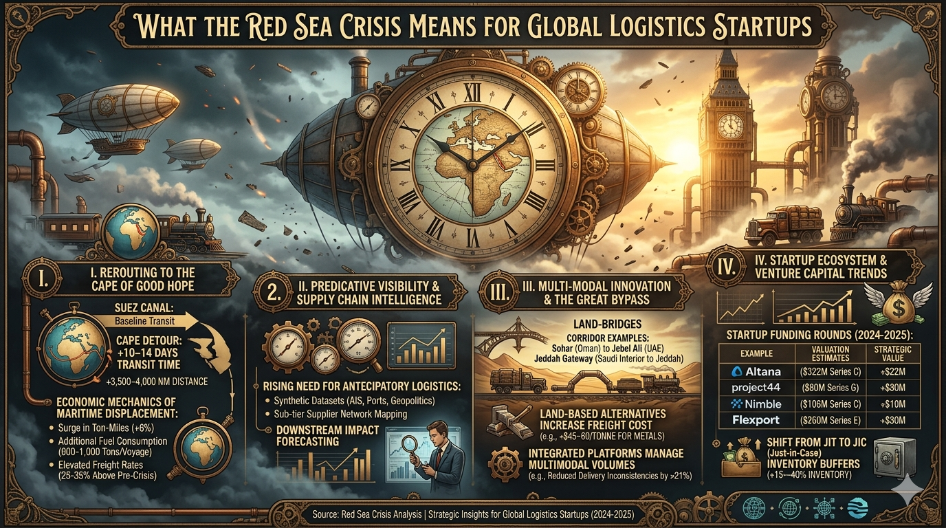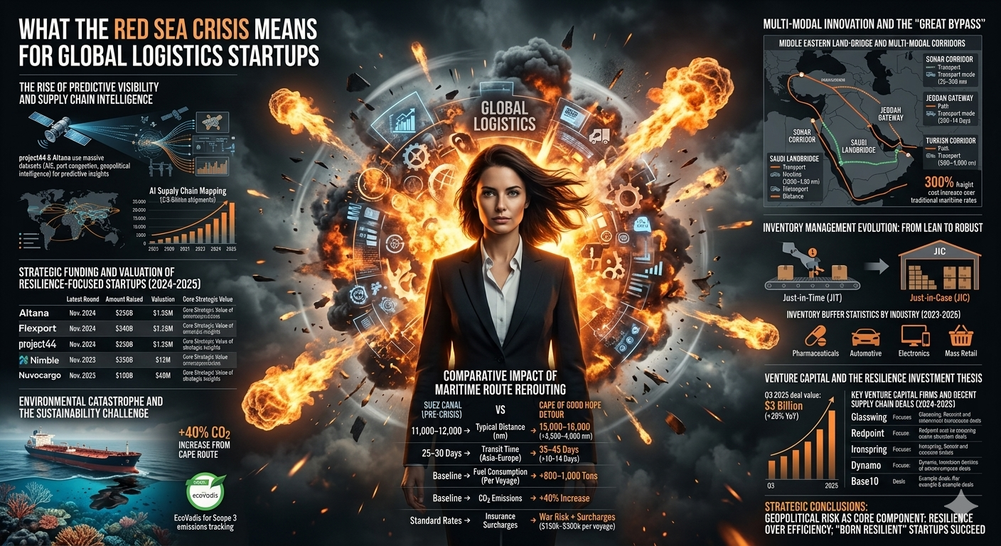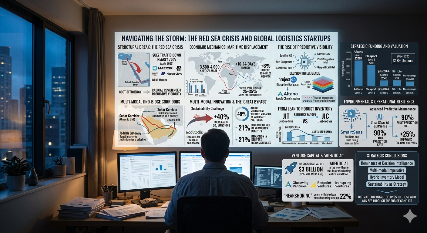 The Red Sea crisis of 2024-2025 has acted as a catalyst for a "new normal" in global logistics, where volatility is constant and resilience is the primary competitive differentiator. The transition from cost-optimized, lean supply chains to "anti-fragile" systems is being led by a new generation of tech-driven startups that utilize AI, multi-modal orchestration, and real-time visibility to navigate a fragmented world.