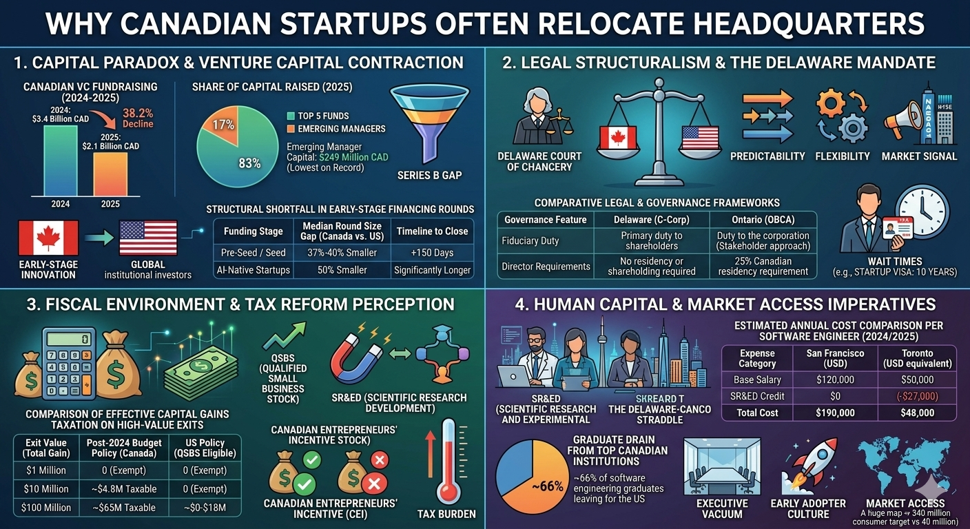 The current ecosystem is characterized by a "capital paradox" where world-class early-stage research and talent development are met with a narrowing funding funnel as companies attempt to navigate the "Series B gap." The implications of this paradox are profound, resulting in a systemic drain of high-potential ventures that incorporate in Delaware or relocate to Silicon Valley and New York to satisfy the requirements of global institutional investors. Understanding this relocation trend requires an exhaustive examination of the macroeconomic climate, the specialized legal protections afforded by U.S. jurisdictions, the nuances of cross-border fiscal policy, and the persistent executive talent vacuum that continues to hinder domestic scale-up efforts.