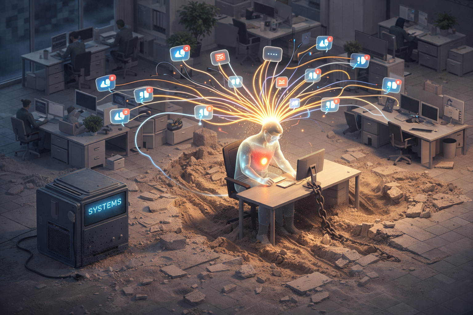 One quantitative sign of this structural strain is margin erosion: revenue rises but profit remains flat or shrinks because inefficiency forces teams to compensate manually for missed handoffs and undefined scopes. Founders who are "too busy" to build systems end up triaging operational fires instead of thinking long-term. Companies that depend on the founder's "directional clarity" for every minor move eventually force that founder into constant context-switching—the fastest route to cognitive fatigue.
